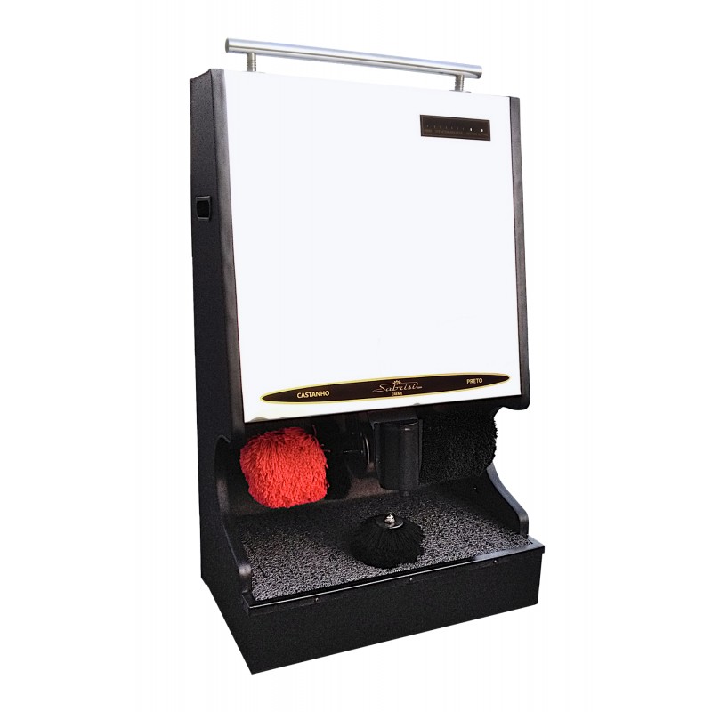 A máquina de engraxar sapatos SABRISI Public é uma máquina de grandes dimensões com um design bastante moderno e apelativo.